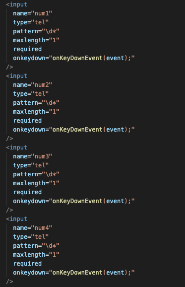 간혹 Input을 하나씩 만들어 maxLength를 1씩 줘서 입력하는 화면을 구현할 때 커서 이동이 불편하다면 이 방법을 사용하면 된다.