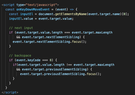 하나의 Input을 사용했을 때는 커서 이동없이 바로바로 처리하면 되지만 부득이하게 Input을 여러 개 사용할 때의 이동 스크립트를 공유하려고 한다.