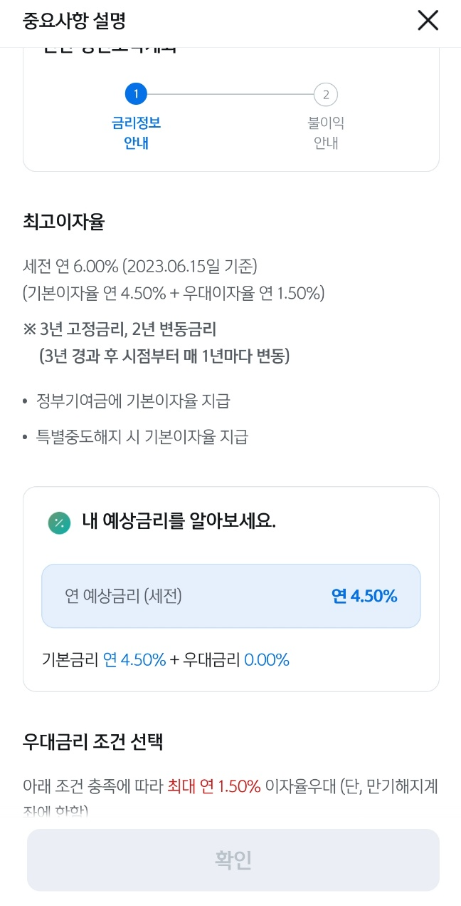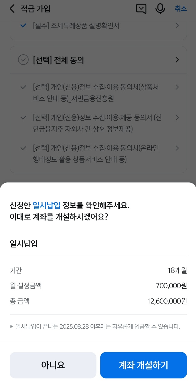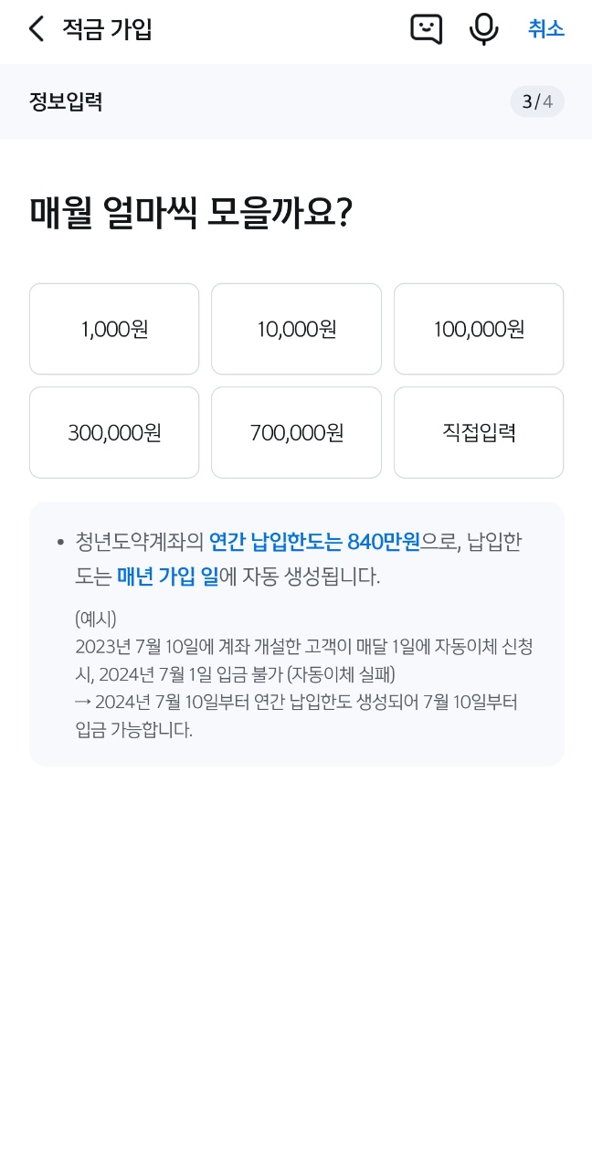 그러나 당장 목돈은 따로 굴리고 있고 큰 돈이 필요할 것 같지 않아서 향후 5년동안은 그냥 아무 생각 없지 저축하자는 생각이 들었고 나름 정부에서 혜택을 주는 이자율도 시중 은행보다 훨씬 높고, 3년 이상 가입 시 비과세 혜택도 적용되니 그냥 새로운 목돈 예금 들자고 생각이 들어 +5년 총 7년동안 미친듯이 저축이나 해보자라는 마음이 들어서 가입하게 되었다.
