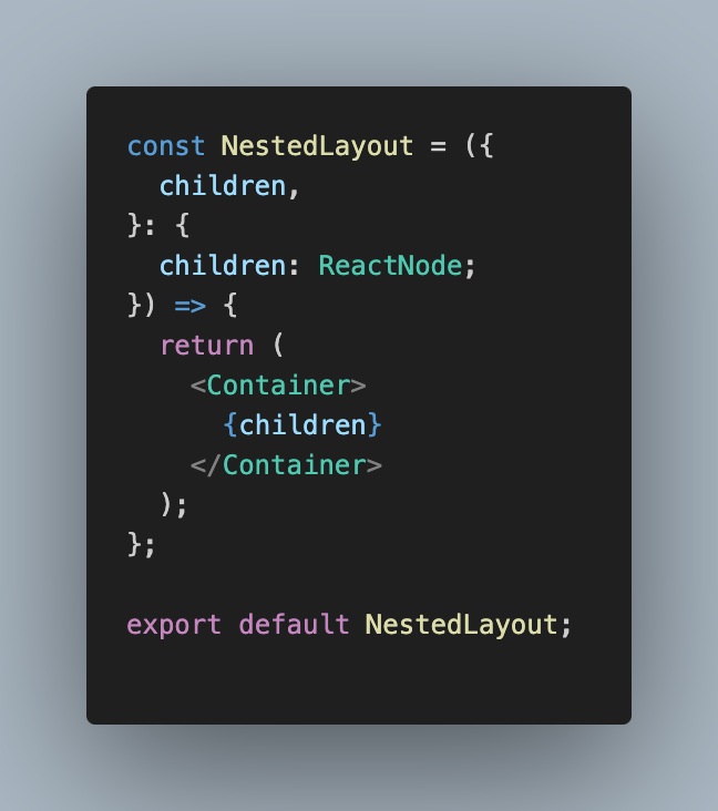 Children의 디렉토리 안에 layout을 만들어주고 그 안에 NestedLayout Component로 children을 감싸주면 끝이다.