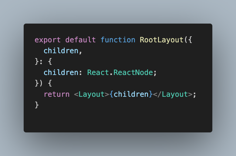 "RootLayout에는 Layout Component를!! Children Layout에는 NestedLayout Component와 page를!!"