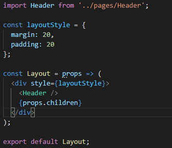 먼저 Layout 함수형 컴포넌트 안에 Header를 넣어주고 {props.children}을 넣어 Header에서 클릭이 될 때 마다 해당 Page들을 불러와 준다.