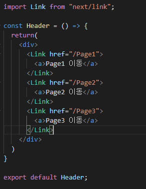먼저 Next.js에서 기본적으로 제공해주는 Link Component를 통해 Header에서 사용할 Tab 버튼을 만들어 주었다.