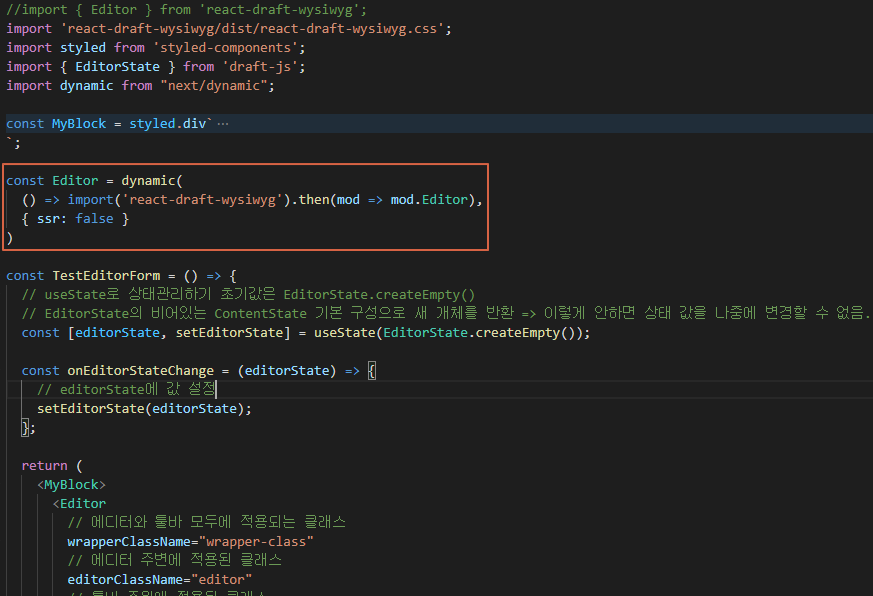 import에 도움을 준 링크 : SSR window is not defined · Issue #893 · jpuri/react-draft-wysiwyg · GitHub