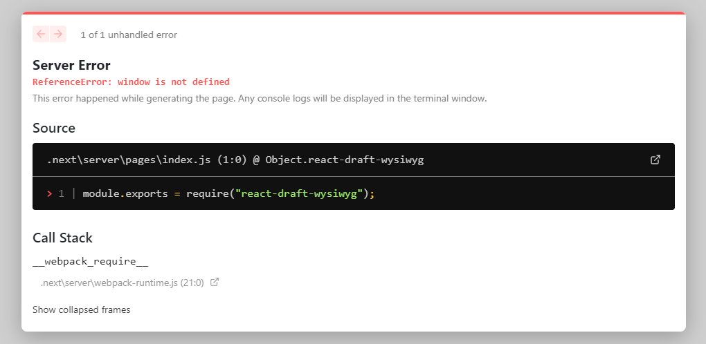 마침 react-draft-wysiwyg 이라는 React.js에서 많이 사용하는 텍스트 에디터의 대한 모듈을 개발하던 도중 오랜만에 만난 에러가 나와 해결방법을 소개하려고 한다.