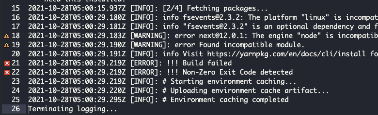 Development Etc. - AWS Amplify '[ERROR]: !!! Build failed, !!! Non-Zero Exit Code detected' for Next.js or React.js